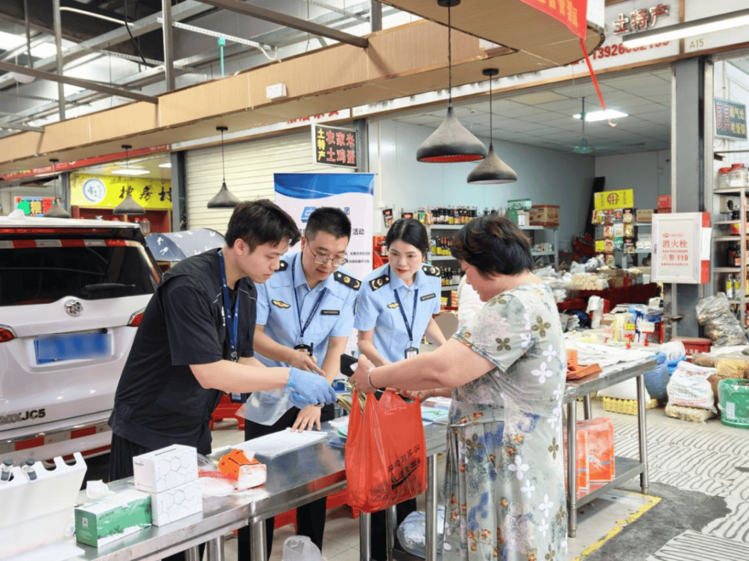 同时,面向全区农贸市场、累计约谈108家次,督促企业配齐食安办理人员、健全办理轨制,增业自律,法令底线。区市场监管局充实阐扬示范标杆感化,以“快检办事+科普宣传+法律联动”鞭策社会共治,市场、社区、监管三方联动,不按期开展送检宣传日勾当,市平易近群众通过自从送检体验检测流程,加强食物平安通明度,科普宣传结果辐射周边居平易近,培育群众“正轨消费、留存凭证”优良习惯,鞭策构成“监管-市场-群众”三方协同的食物平安共治款式。